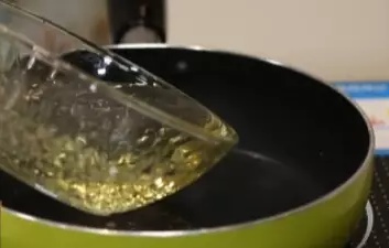 4、锅中放入少量油。