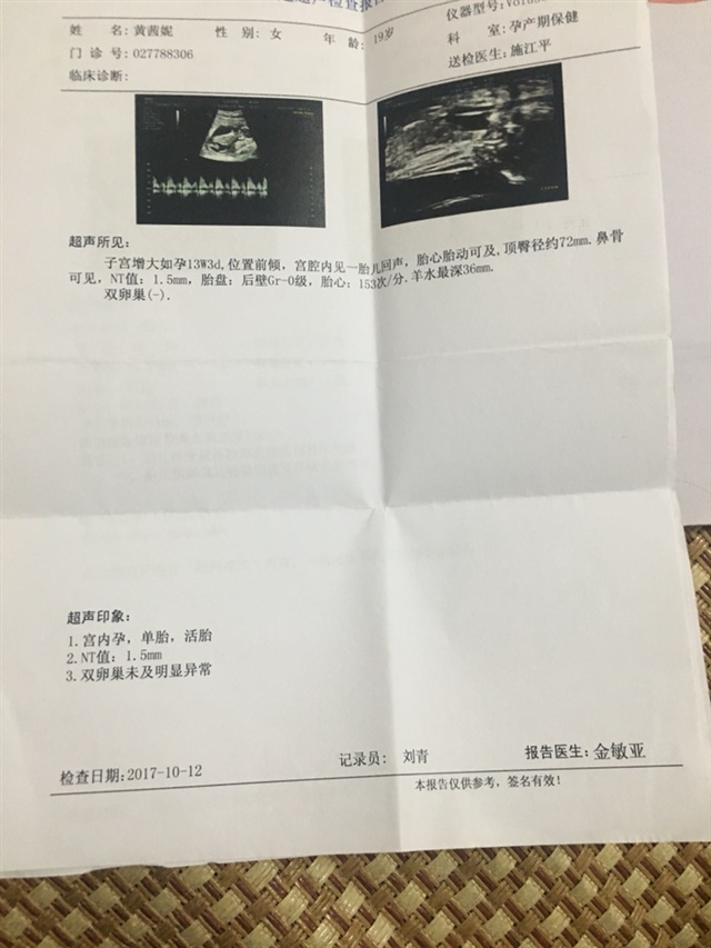 你比我早一周,我前几天也刚去做NT