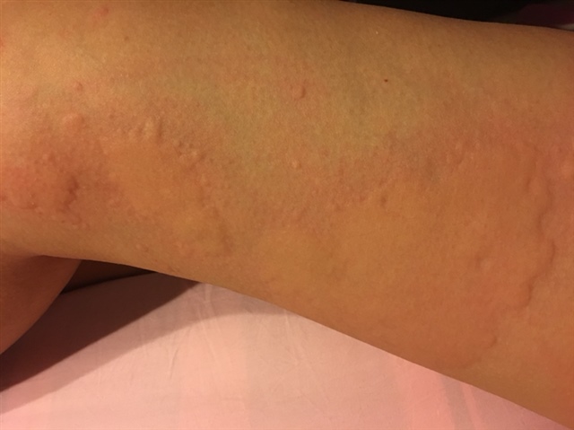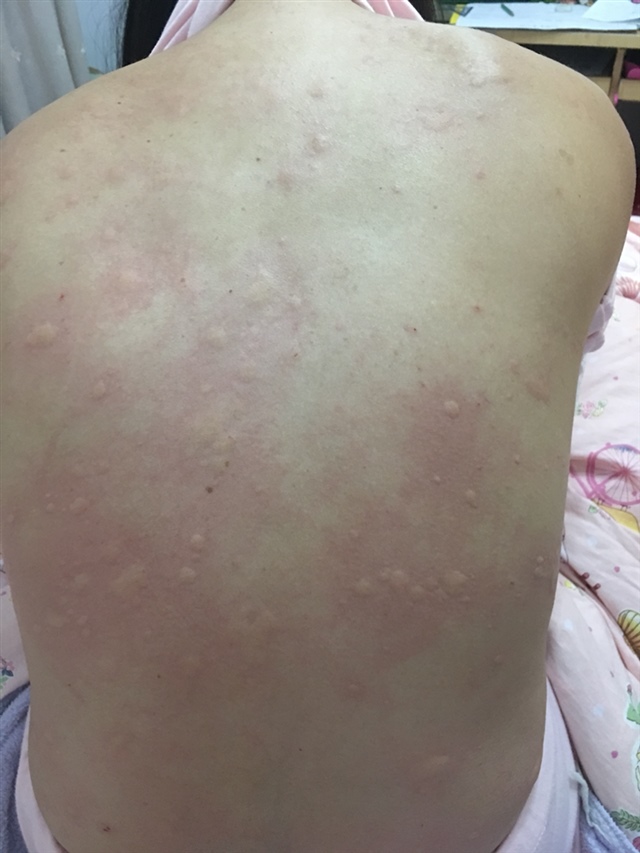 寻麻疹,我也有过,抵抗力差。有的怕热有的怕冷就这样,我当时怕空调和暖气。用点药物涂涂,记住千万别抓,你看你的是热性还是良性。热性就别让身上太热,良性就多穿。