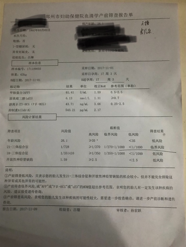 我的也是临届风险,1比五百多,然后去做了无创,检查出来没问题,