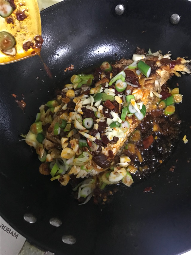 💓小C💓[帖主]:很简单,锅内放油 油热了 把鱼两面煎金黄,盛盘备用,另起锅放油,放葱姜蒜辣椒酱油,倒入豆瓣酱炒,把鱼放入 加水 ,盖锅烧开,小火收汁。