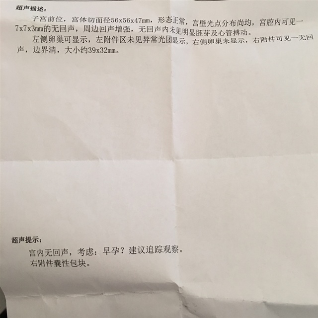 不正常啊 那么小为什么让你做b超 什么都没有 42天以后再做