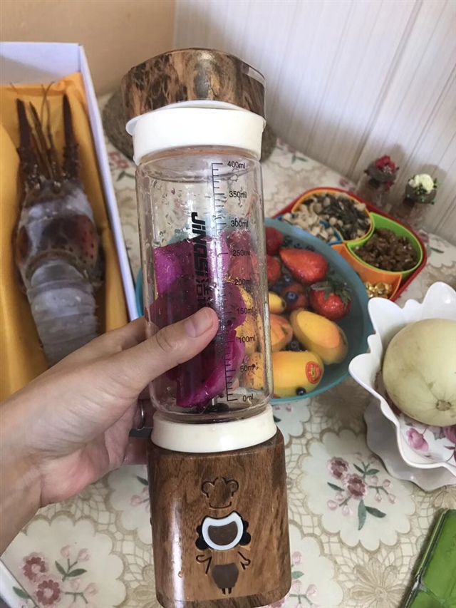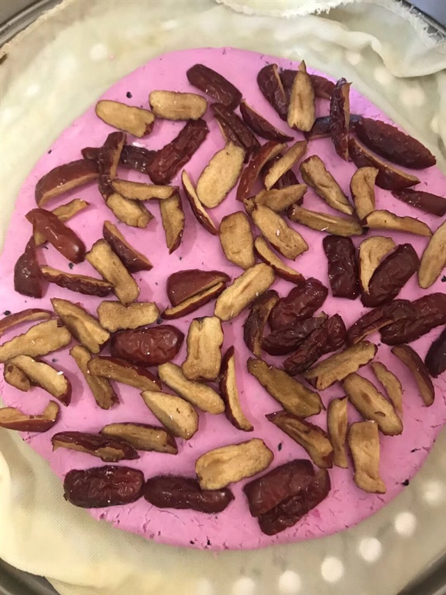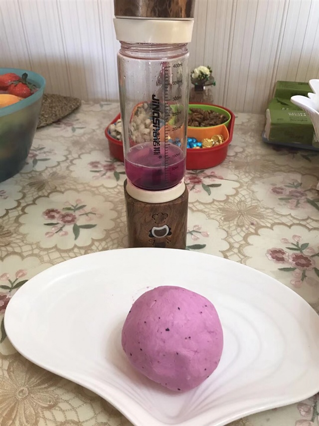 诺敏(辅食机)保温杯[帖主]:面粉加火龙果汁,上锅蒸,很好吃的