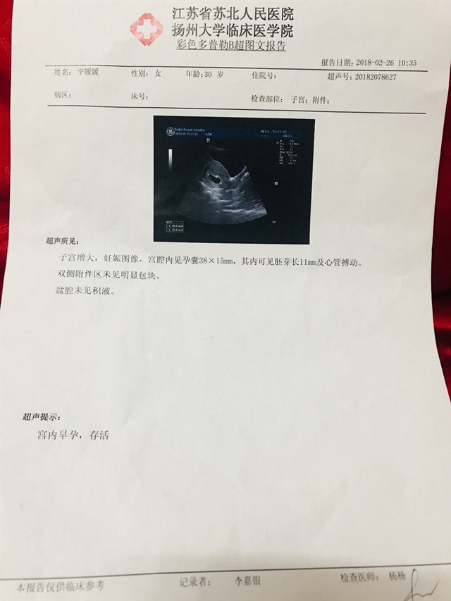 恭喜!接健康胎心胎芽