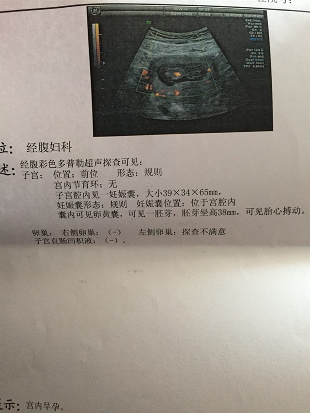 奇怪了,我的b超单上直接写的,差不多快到7周检查的,单子上写的就是6周4天,很准确的,你怎么上面什么都没有