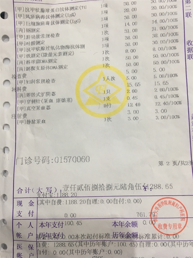 你查的这些我基本也有查,也查了一些妇科的。2000元左右。