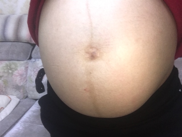 你这个肚脐妊辰线是歪的啊 不好说男宝还是女宝