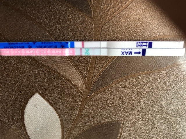 [帖主]:红色是排卵试纸,蓝色是早早孕试纸,早孕试纸是白板呢