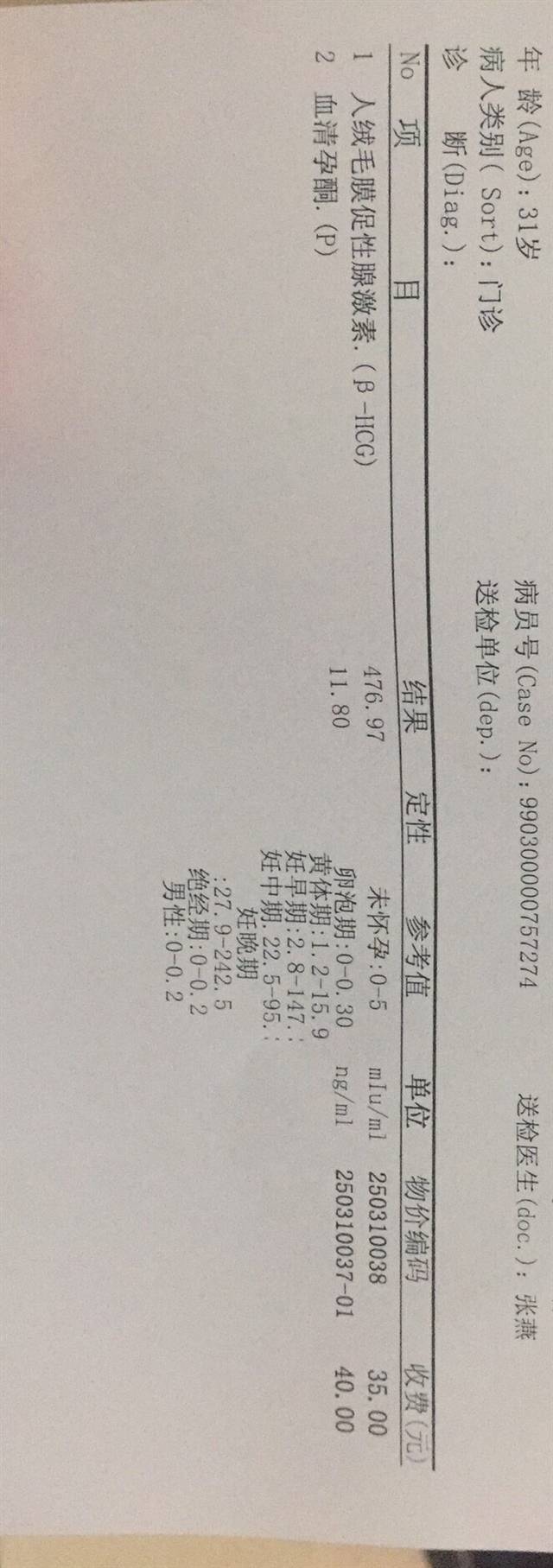 个人体质不同……只要没出血过几天在b超看看吧……我满3个月了建卡的时候查血孕酮都才15.4呢……现在怀的是2宝……现在胎儿满5个月了发育好好的……