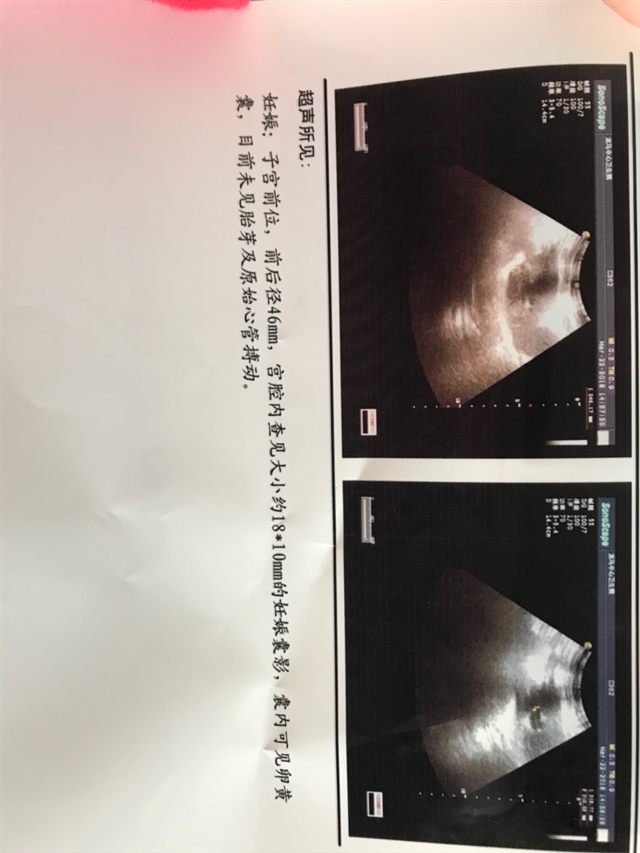 我也是六号。不过已经一个星期有褐色分泌物了,今天B超只有卵黄囊。担心得很