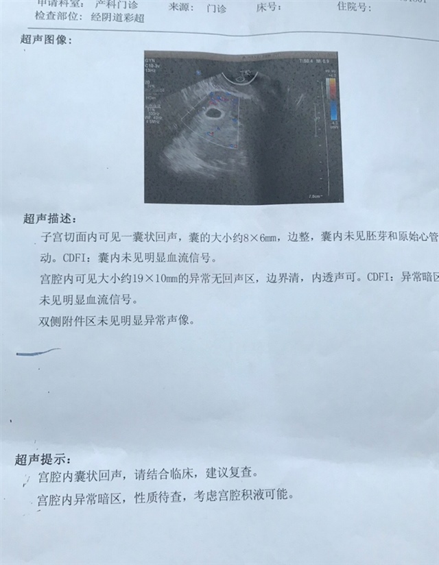 没看见胚芽 有没有明显血流 就说明没发育起来阿 这个时候应该看见卵黄囊 说明宝宝继续发育了啊