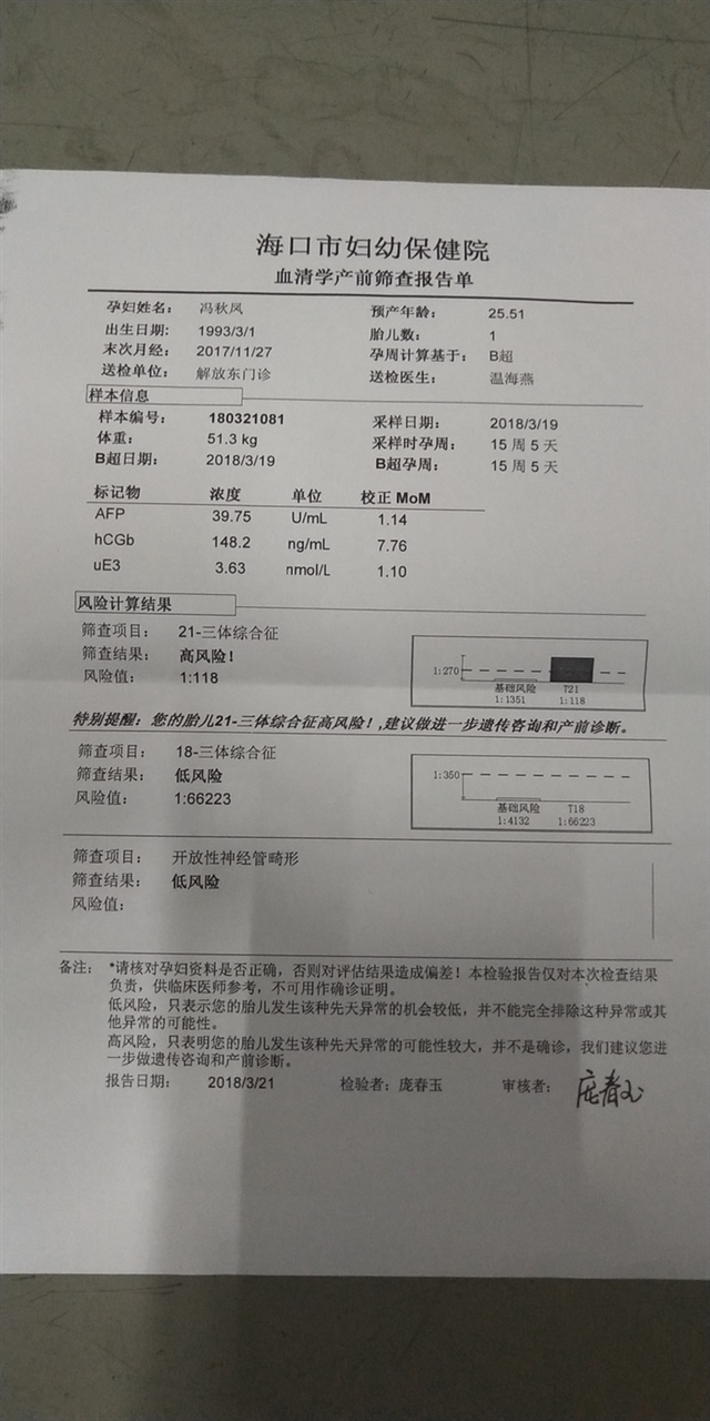 💫单纯就是幸福💍[帖主]:我已做过无创了医生说没什么了