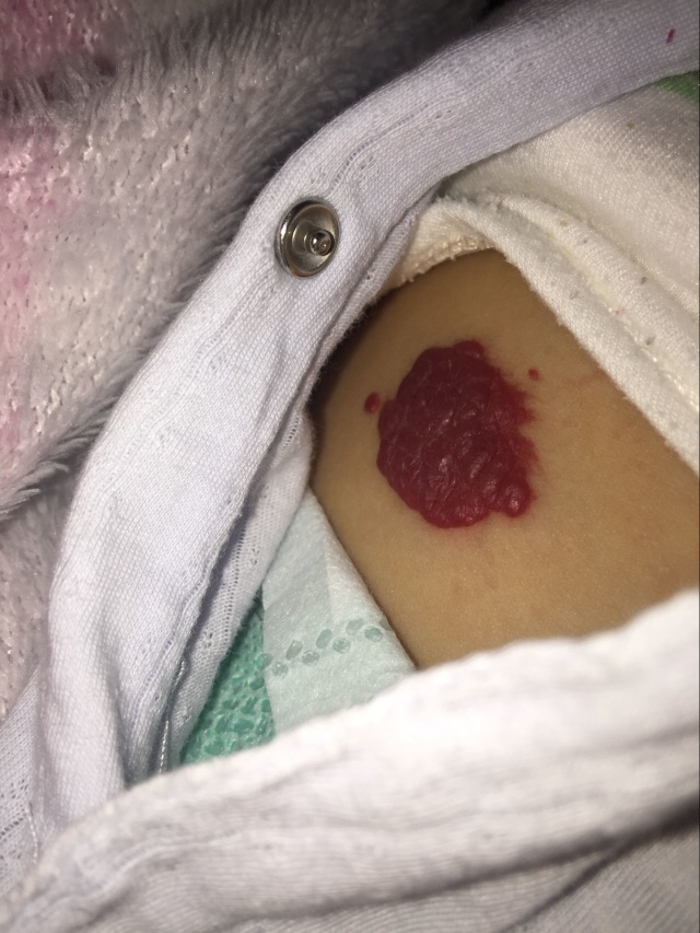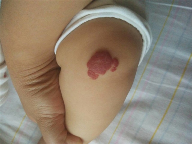 我家大宝以前腿上也有一个,大了就慢慢退了,但是记住一点,千万千万别弄破