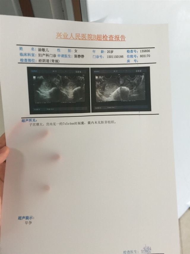 我连b超图都在医生那里 很舍不得他 有时想他但什么都看不到