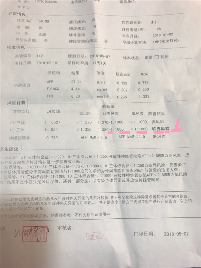 我也是临界风险,前几天做的无创现在等结果