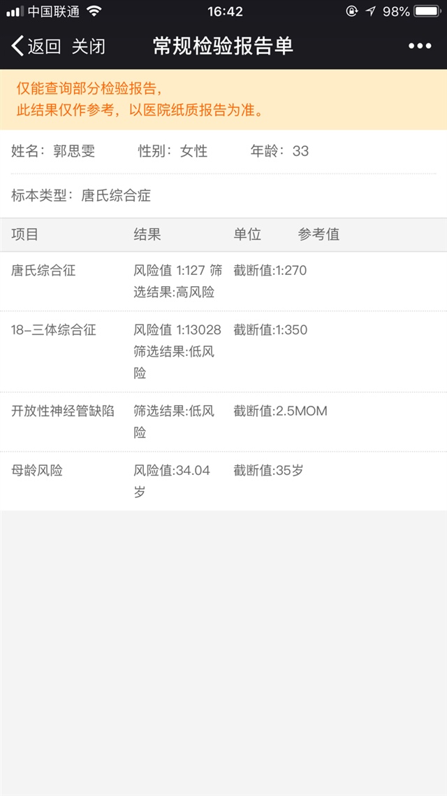 我也是有一项高风险 就去做的无创