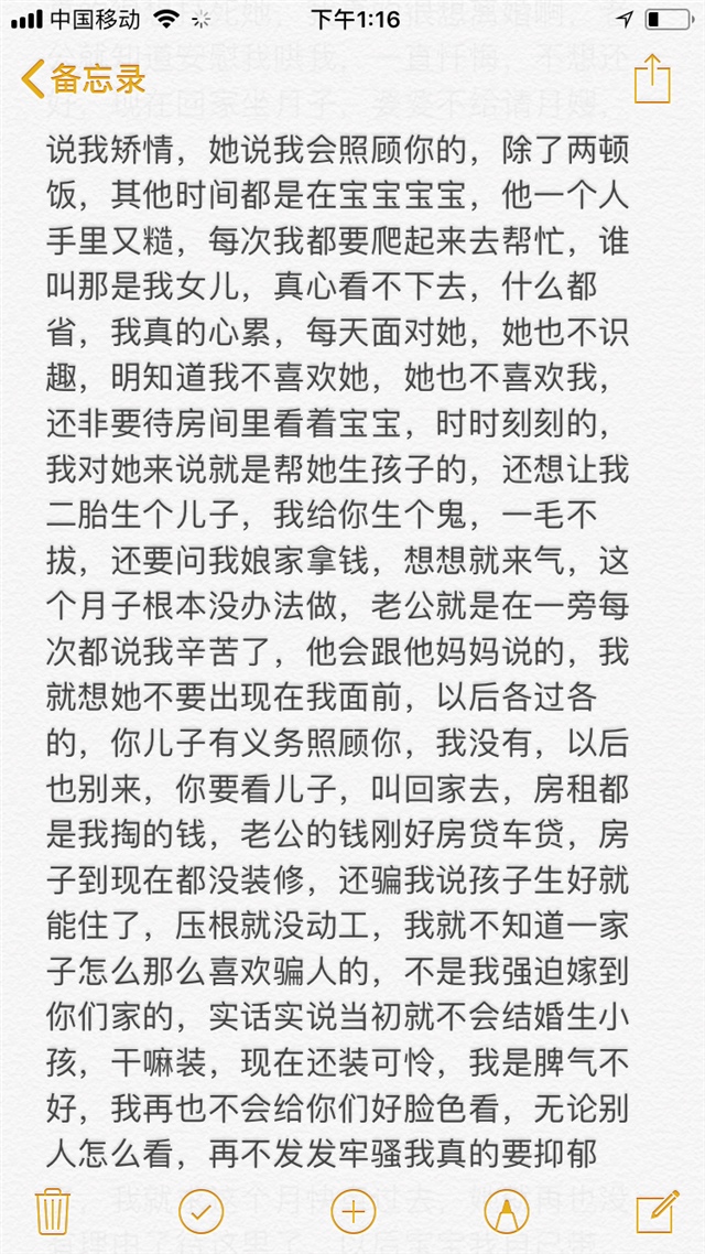 皮皮妈[帖主]:我已经打算好啦,出月子就不来往了,宝宝自己带,给老公两年时间,把房子装修好,要不然真的没地方住,老是租房也不是事,毕竟孩子大了读书是个问题,城市里都是按房子分配学校的