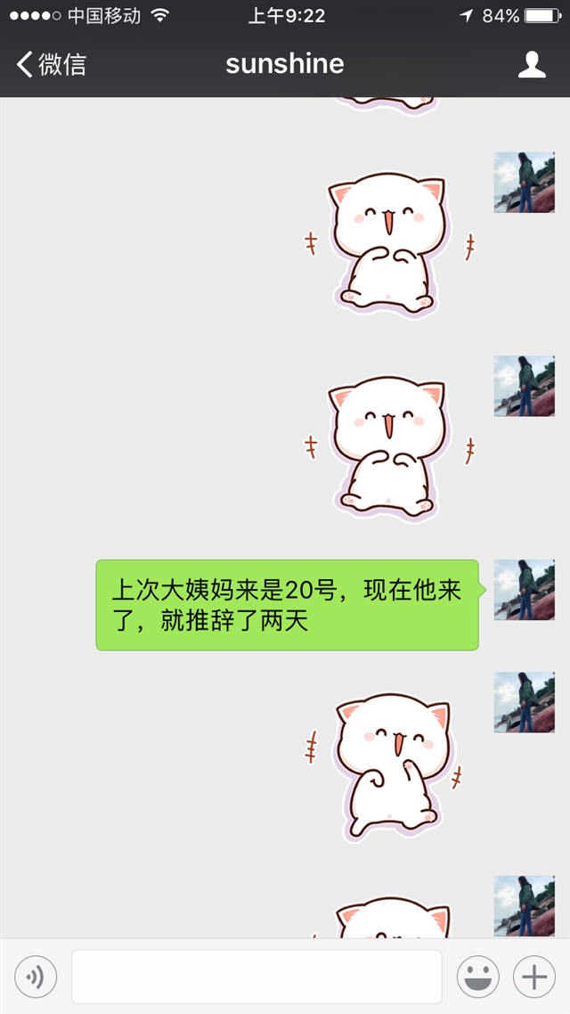 sweet[帖主]:就是以前月经不调身体不好,姨妈一直推迟很久才来,现在调理好了差不多来的正常了就开心呀!