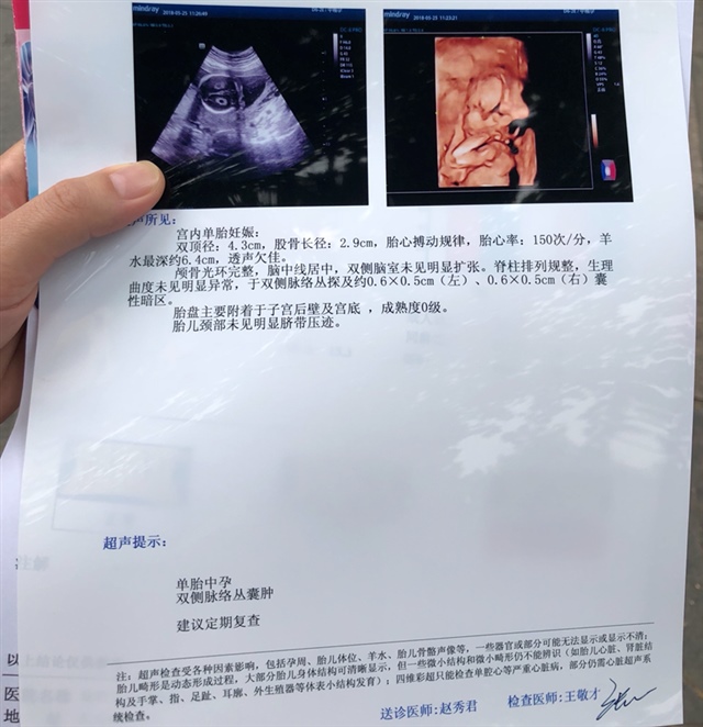 矿泉水[帖主]:真的假的,我是19周查出来的,今天刚做的无创,医生也是让我在等等,等到26周做大排畸看看,希望我的✌被吸收