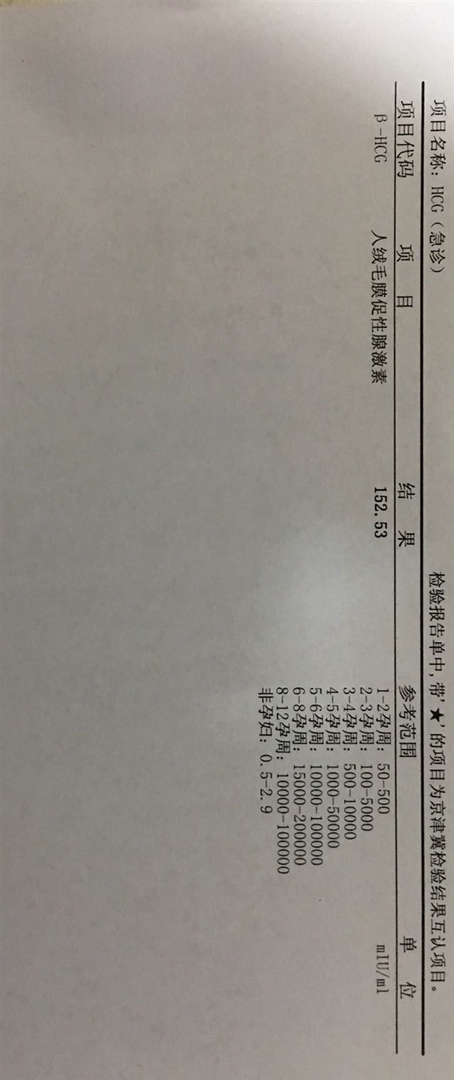 刘颖[帖主]:嗯嗯,我查了孕酮,但是周一才出结果,我每月35天左右来例假,应该今天来,测血hcg152