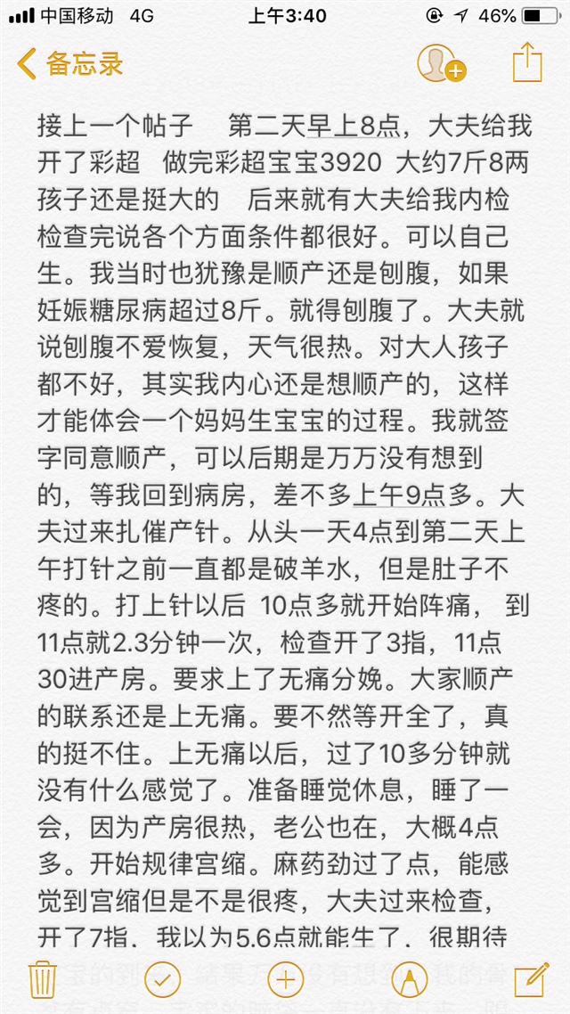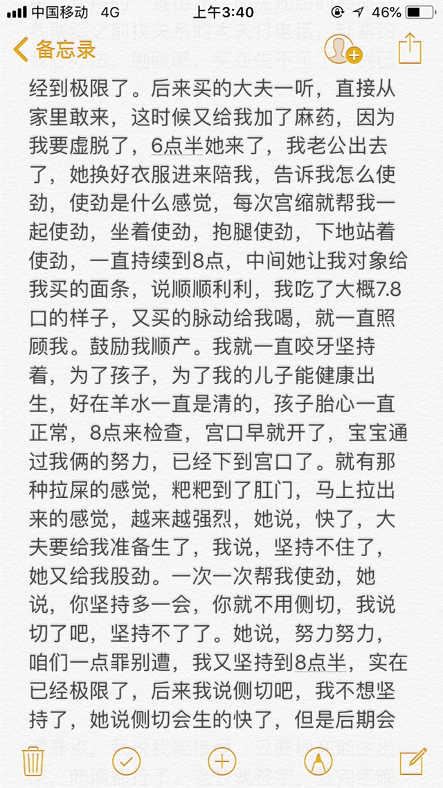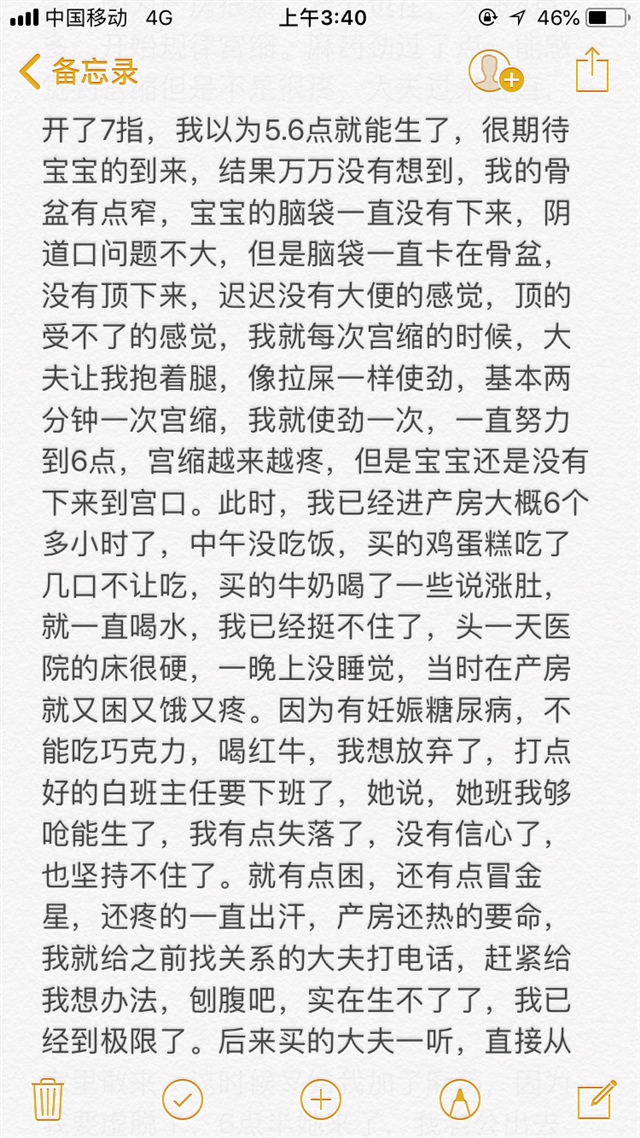 A橙子 [帖主]:对对,就是那感觉,后来真的神志不清了,就是能让我生出来,咋滴都行,我也是后来那点宫口,开了好几个点。真心遭罪。