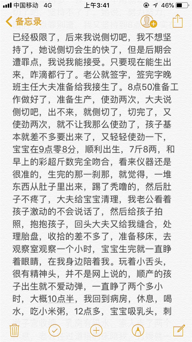 A橙子 [帖主]:我不得撕裂也挺遭罪,但是我侧切,切的太大了口子,正常不会切那么大