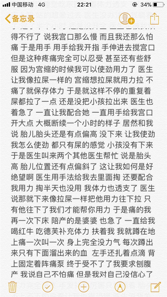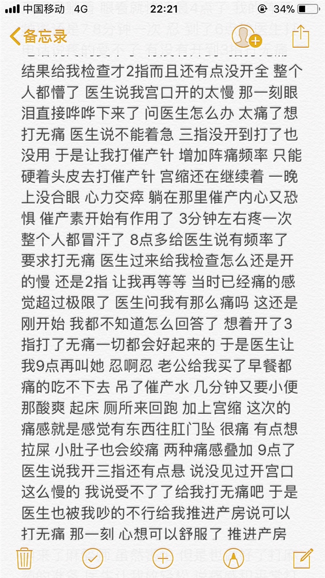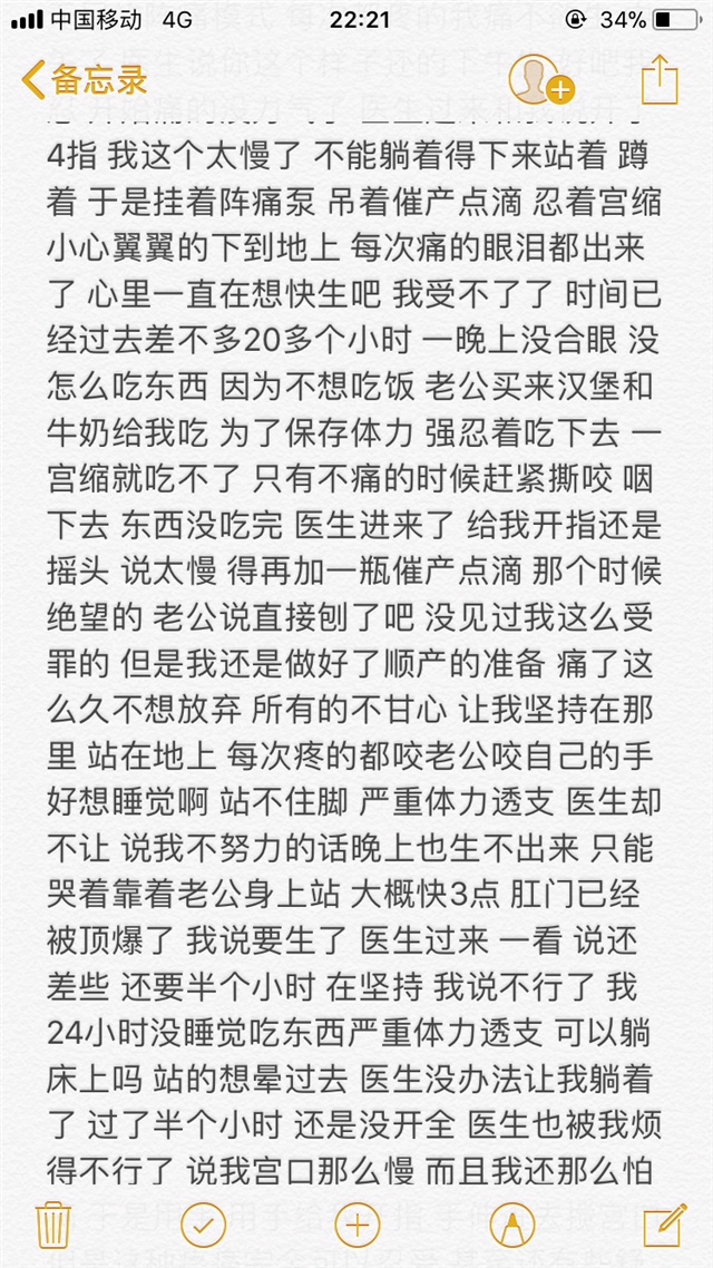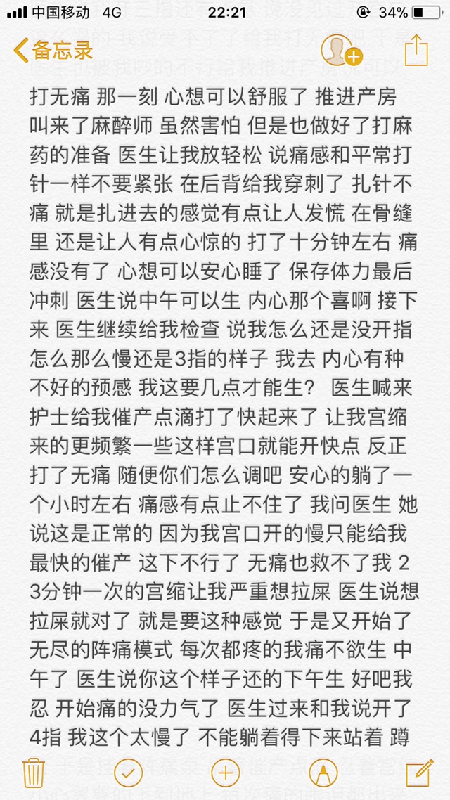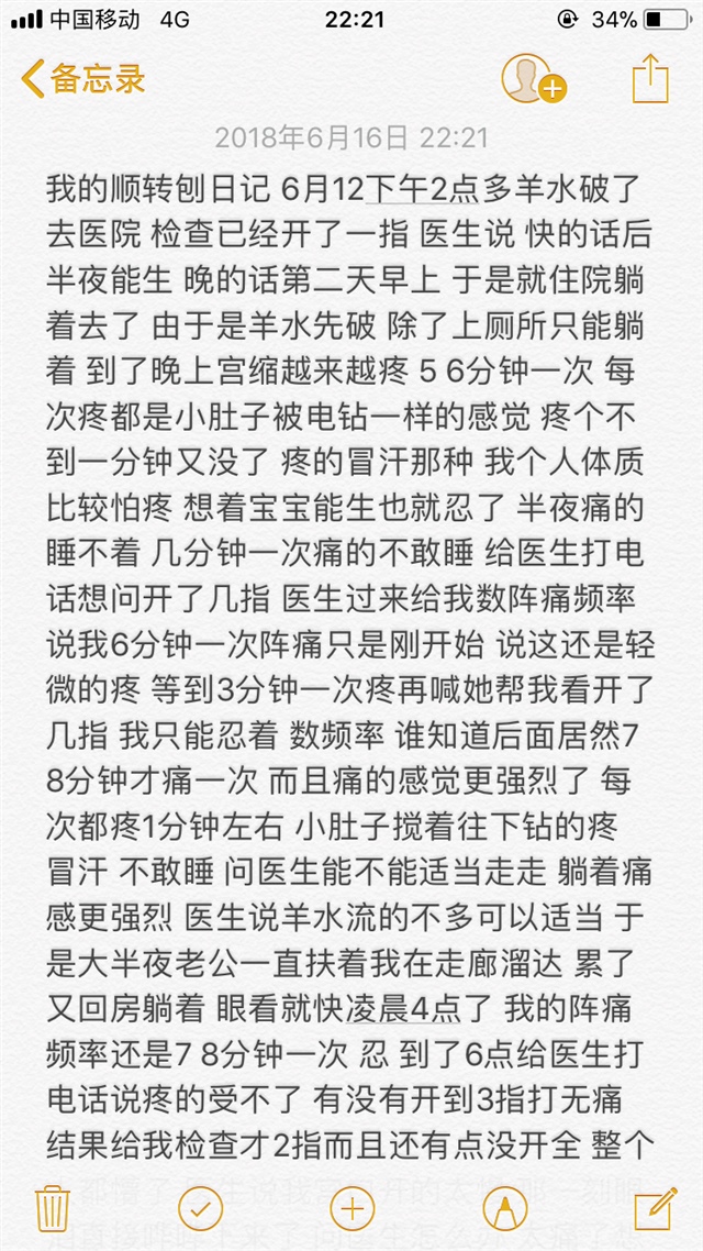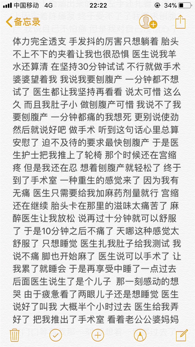 看了很久 感觉太痛苦了,折腾了这么久,结果是美好的,看见孩子的一刹那一切痛苦都值了,母爱是伟大的。恭喜宝妈。