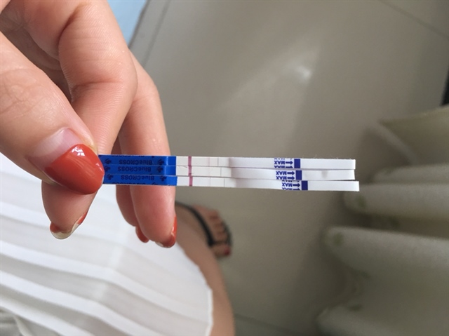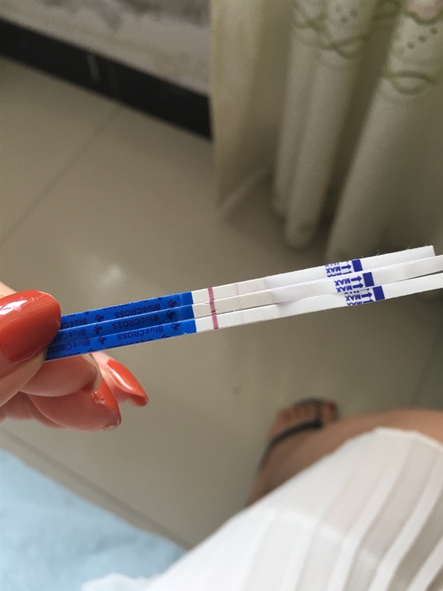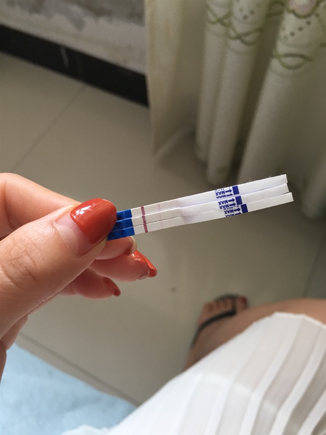岩^o^寶^ω^兒[帖主]:还有一个是夜里测的!可以测了,买那种试纸灵敏度高一点的!能测出来!