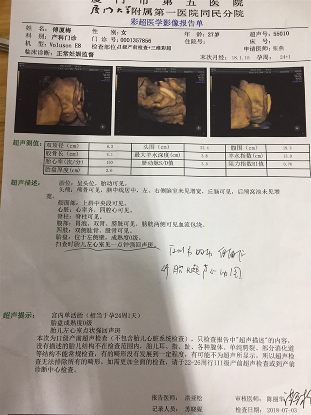 我没有做胎儿心脏彩超 因为医生说观察下 所以下次去检查看看