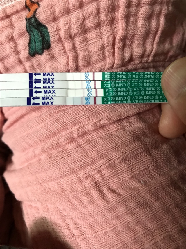 我是7月6号的周期,4号和5号用试纸测的也是这种一深一浅,但是肚子有时候会有点疼,感觉和来大姨妈之前的那种感觉差不多,当然现在还没来大姨妈