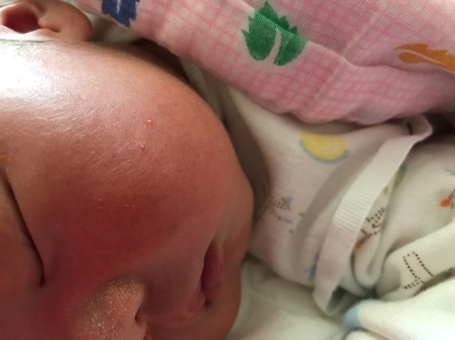 你生的前两月吃点去胎毒的就不会有,娃娃皮肤很干净,不过没吃,过一段也会好