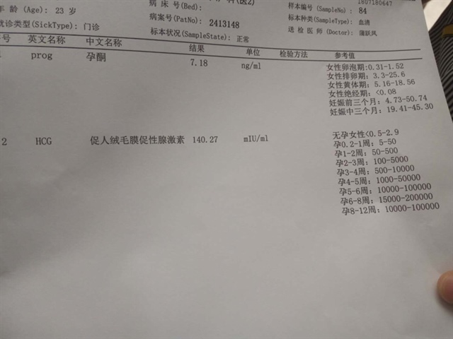 孕酮太低了,明天再查下看看翻倍情况吧