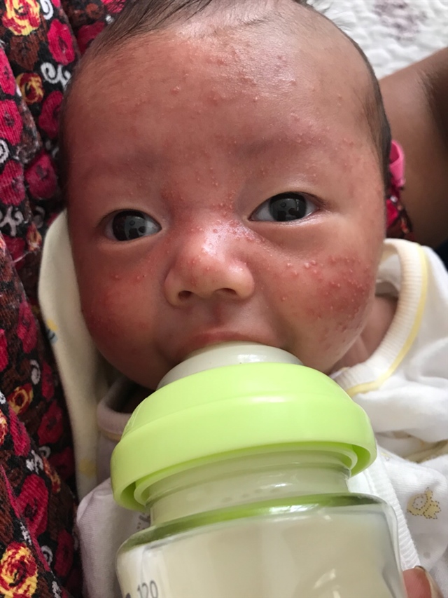 新生儿痤疮,我家大宝那会也有,可以擦百多邦,用淘米水洗脸
