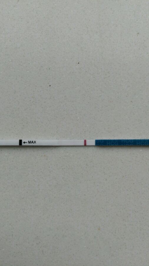 我是2月26號來的例假,今天測了一下和你的一樣淡淡的印。不知道是不是懷了。你結果怎麼樣?