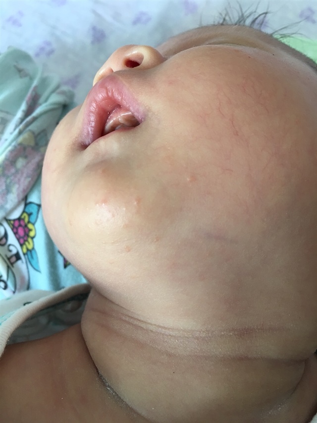 脖子是有点红吗,我好像看到了爽身粉,如果是最好不涂,可以在网上买婴和膏用,很快好的