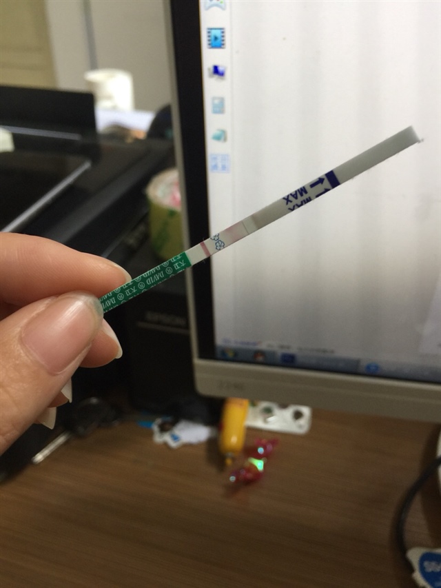 允菲??Z[帖主]:是不是要去医院查血,刚开始晕染,过了一分钟成淡色线条的