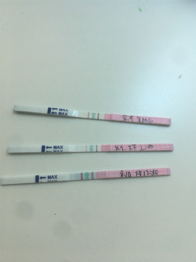 这个是排卵试纸,就是不知道这个紫色的两条是不是所谓的强阳,这样多久卵子才会排出