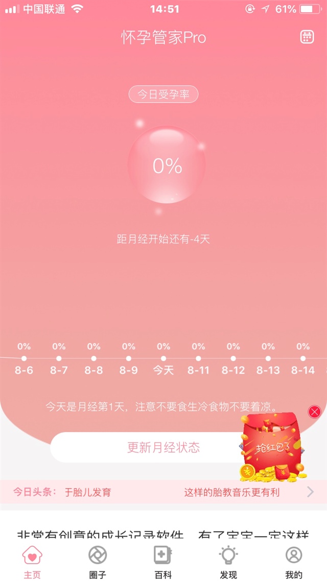 一切顺利2018:我的~状态变更~备孕~上次例假日期和间隔天数,填好就可以显示了