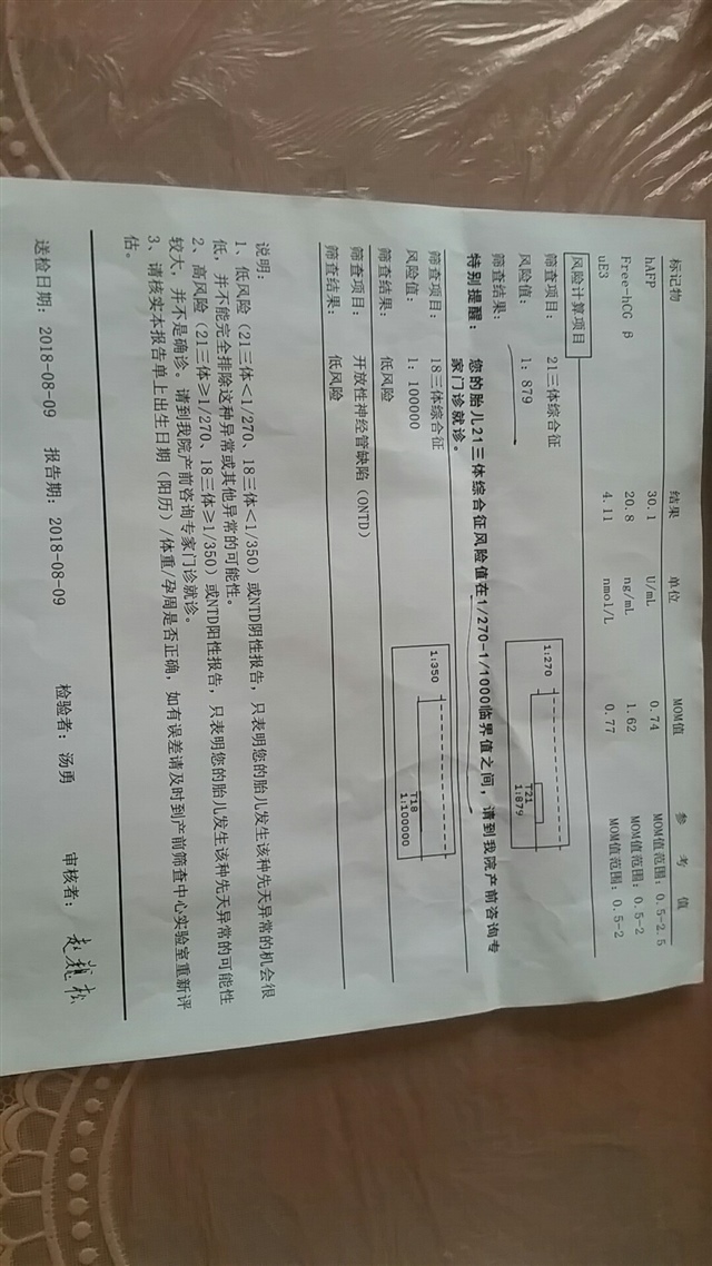 我的是1/309,临界风险,也就是说309分之一的概率是畸形,医生让做了无创,昨天刚做过,现在煎熬的等结果