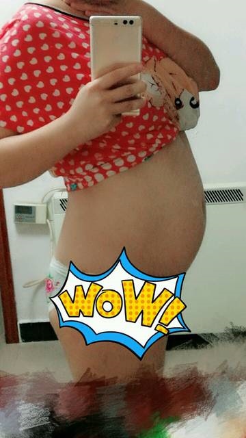 好像姿势的关系,好像在挺着肚子,如果站直没这么大吧