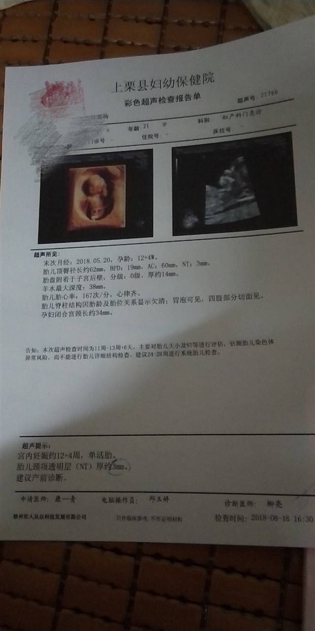 自己吓自己,吓了两三天。后面没事,顺便做了早期唐筛,没问题。