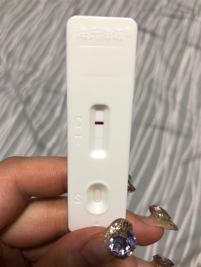 怀了,不同牌子反应不同的。我之前测的一个放了大半天后才出现一条淡到要找角度才看见的线。不过过了两三天再测就很明显了