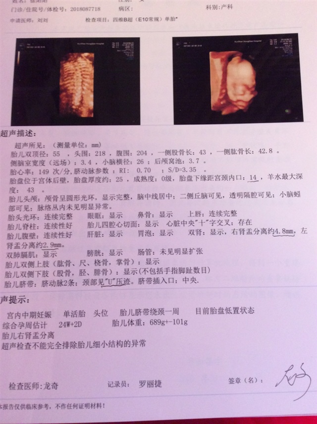 看胎盘后壁及胎心,女孩