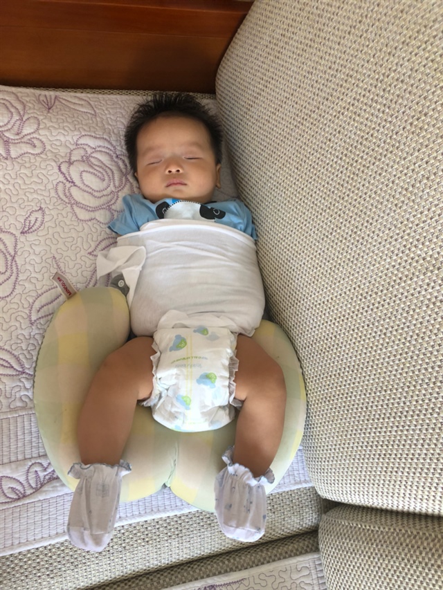 小孩出生是缺少安全感的,我朋友有教我拿个枕头放下他的肚子上,他也睡得踏实
