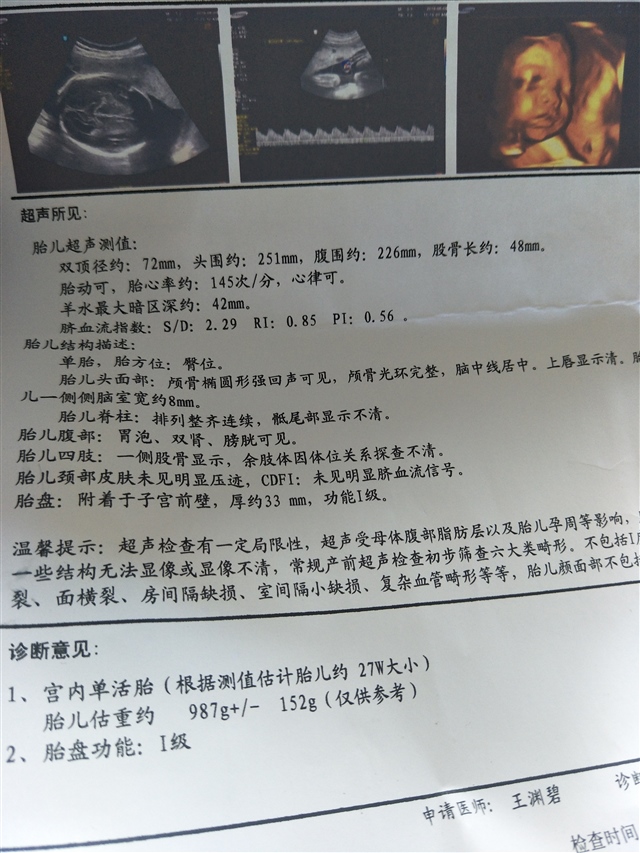 稚念[帖主]:这个是普通的四维彩超,我是27周去做的