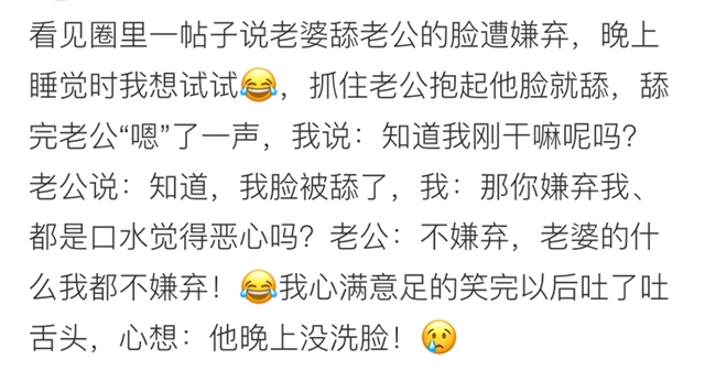 不油腻么,我老公脸要是伸过来给我舔,一巴掌呼过去,满脸泛油光加痘痘的