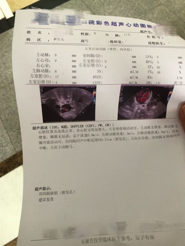 我家宝是心脏隔膜缺损一毫米 出生以后才能长好 问了好几个专家 说低于3毫米的都能长好 假性的
