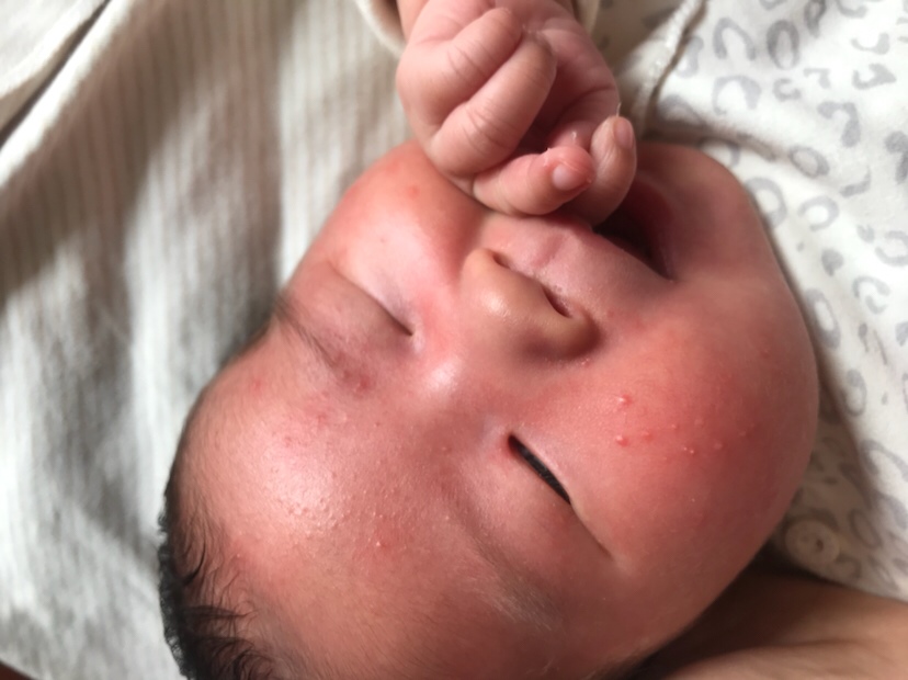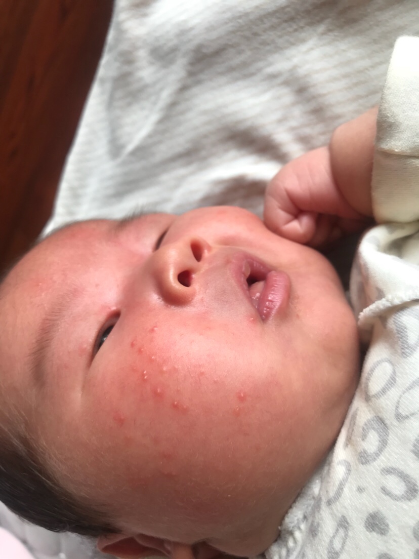 是胎毒,胎毒也就是湿疹过帮个月就好了,不过不要穿很厚宝宝怕热,就出去那三四天怕冷!
