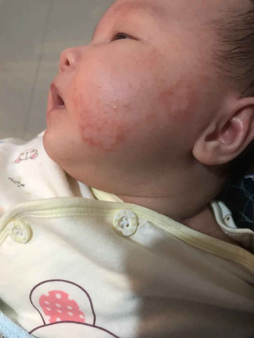 看像是湿疹,你要是母乳喂养,一定注意饮食清淡,不能吃发物,不然孩子这个湿疹不会退
