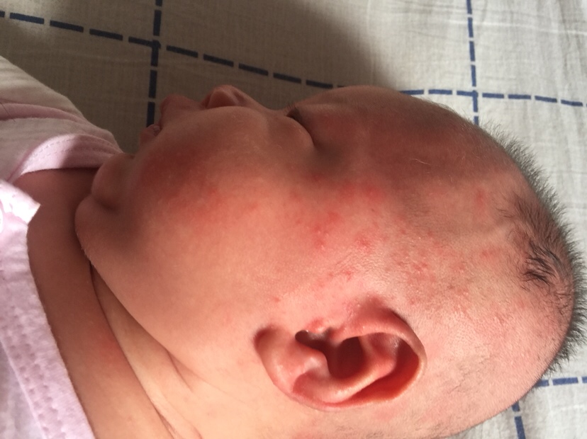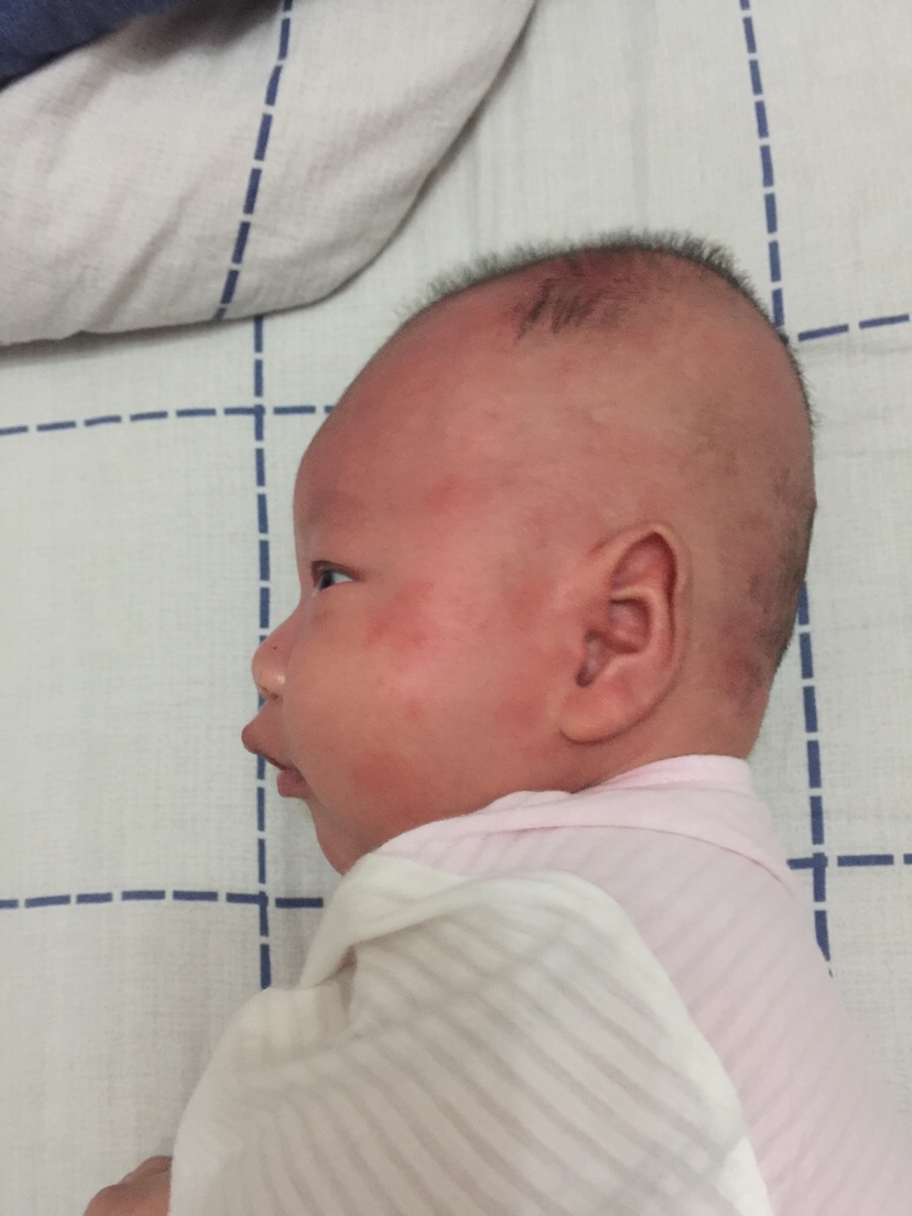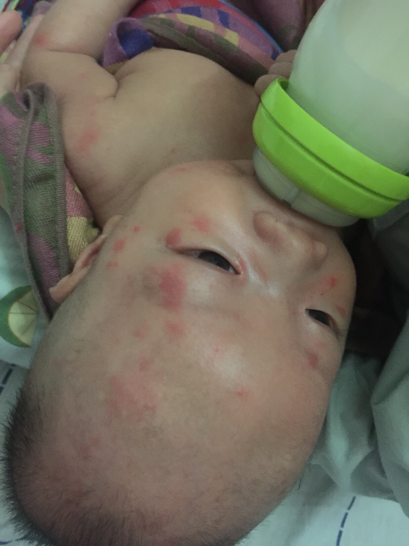 而且每次吃奶哭闹红斑出现的位置不一样